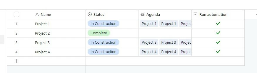 What if you had an automation that ran once a week that’d grab all the ‘In Construction’ products and dump them into an ‘Agenda’ table with a date for the meeting?