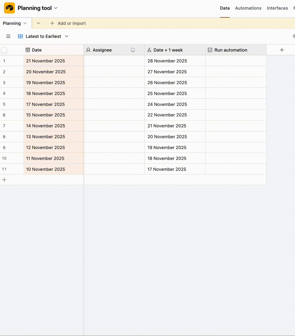 I want to add the planning to my airtable base (which i have done now) BUT: