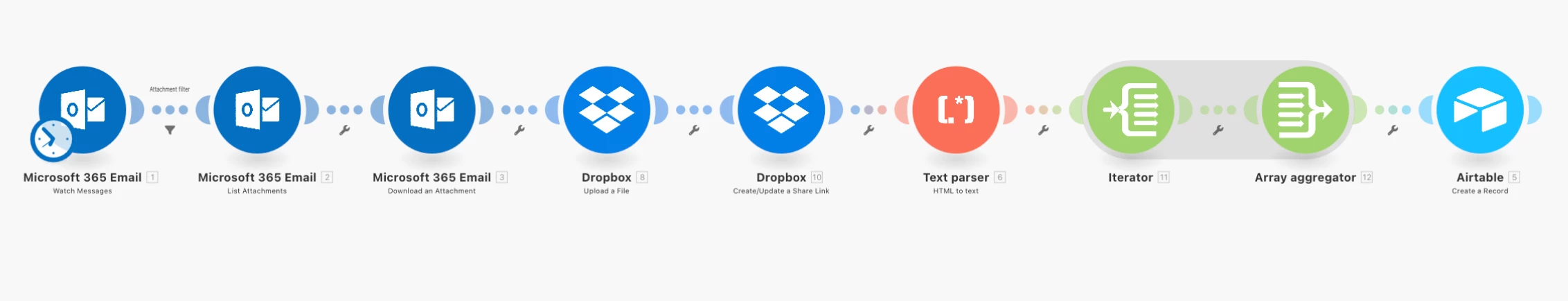 Hi guys. I made a connection with Make, so I can transfer every incoming email from certain accounts to a new data row in Airtable.