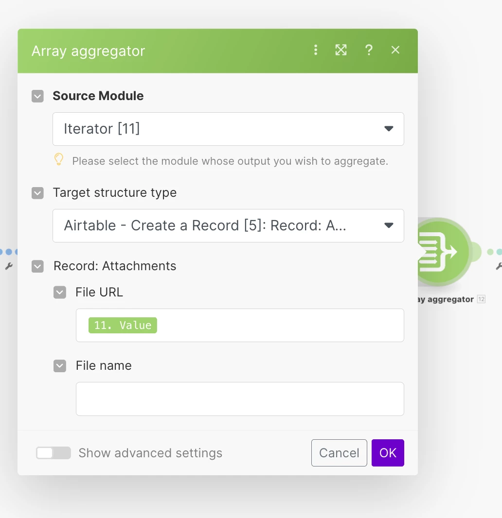 The problems are the attachments. I am showing you in the pictures below how I would like them to appear and how they actually appears. We need every attachment to be shown in a preview as a separate file.. The Make-support thinks it is Airtable-problem, so I am grateful for any suggestion.
