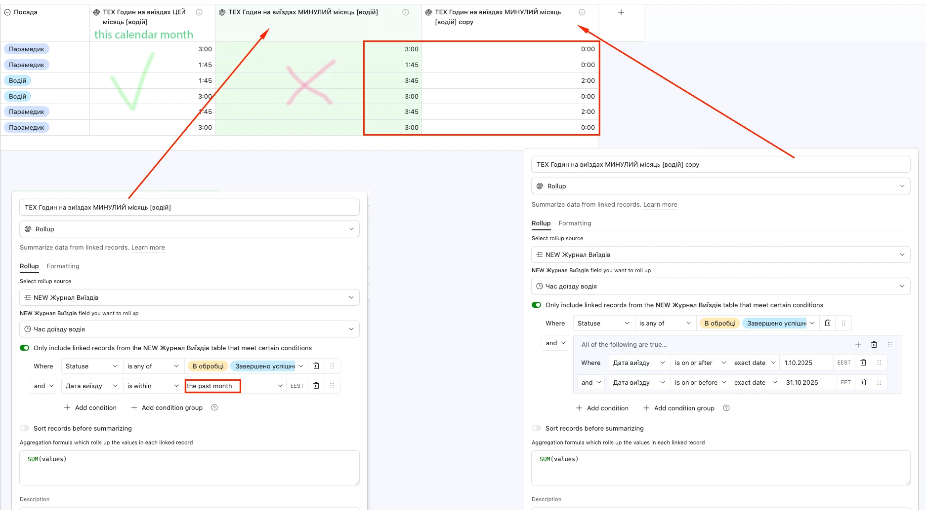 When I set fixed dates for the previous month (from the 1st to the last day), the calculation works correctly.