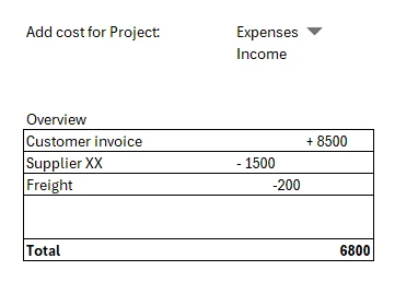 I'm thinking like maybe a quick registration per project with a drop down that determines what the income / expenses is and it add's each registration to an overview per project.