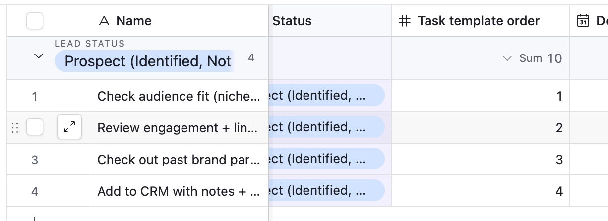 1 the first tasks are created in the right order based on the template order and sorted correctly, and also then I need to be able to manually sort them.