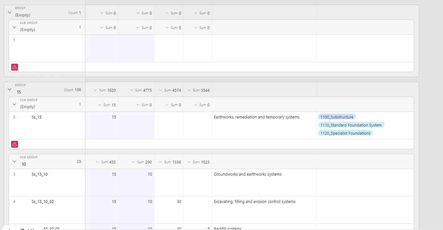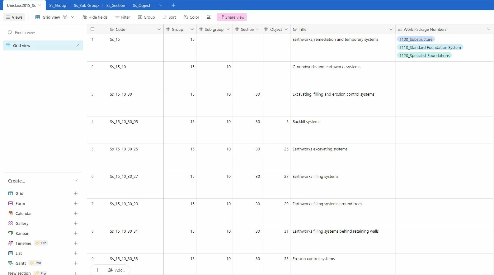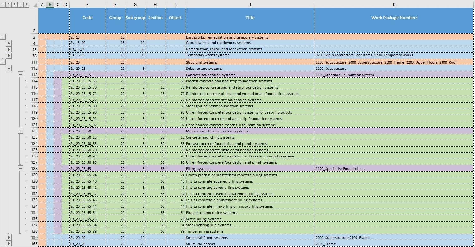 I have a uniclass 2015 system list of Codes that cascade down and have a relationship with each other, as shown in the image you have a group that has a sub-group which then has a section and then objects.