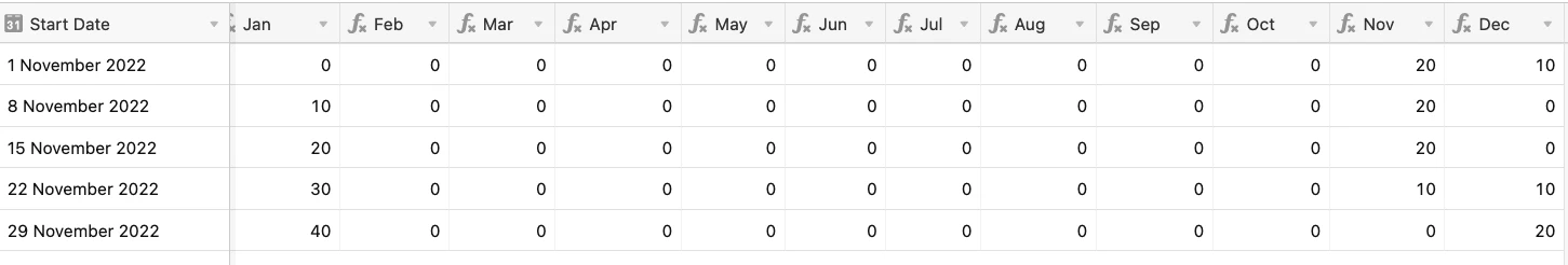I want to recreate something like this, but using a webhook to receive information from stripe, and automatically filling up the amount received, split into the months according.