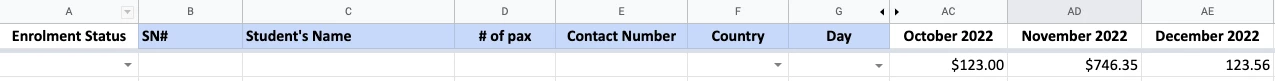 But let’s say Student B joins us in 31 Oct, and pays $80. This $80 should cover: