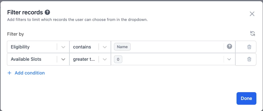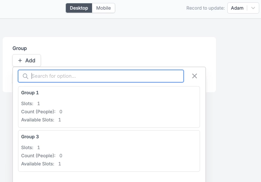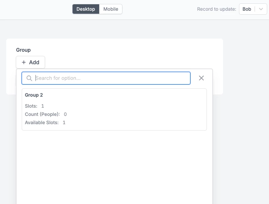 And can it do so while having a ‘live-booking’ functionality - so within Airtable, we have a Groups table that displays the remaining seats, so if group 2 currents sits at 0 remaining spaces, Bob will only have a form that asks him to pick group 4 (not a great example but hope you see what I mean).