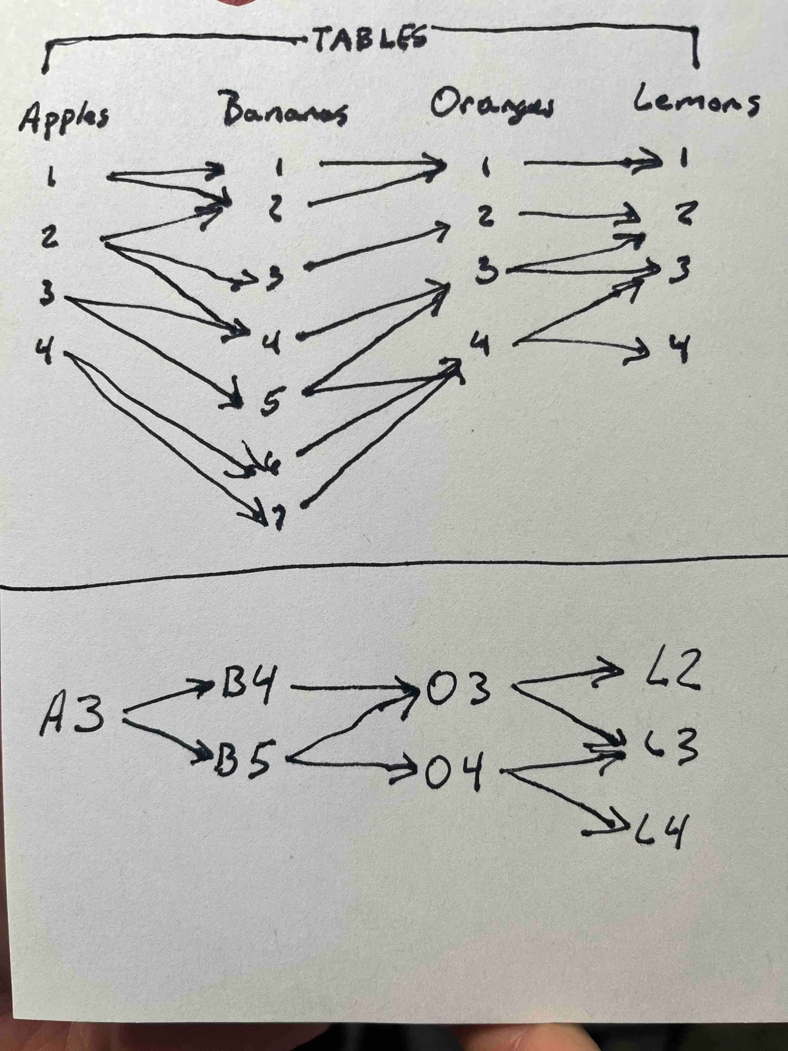 I'd like to visualize these connections. It seems the flowchart extension is what I need, except it only works with self-linked records. In other words, I would need to combine all 4 levels into a single table. This is problematic because I need the levels on separate Tables.