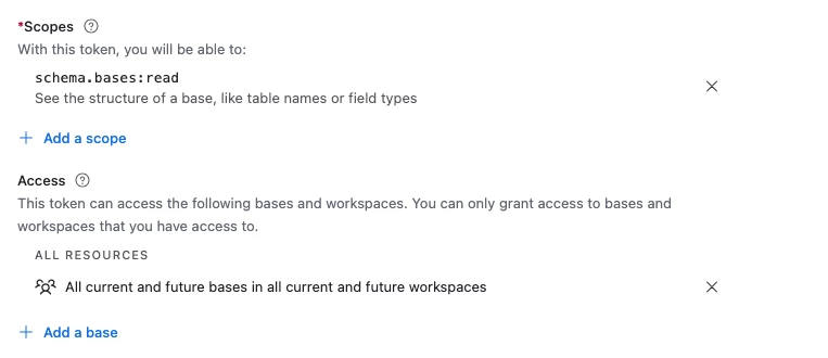 I have workspaces and bases created where as a user I am configured with “Creator” permissions. I have created a personal access token (PAT) and have applied ALL available read permissions and have set the scope to all resources. When I run for example a “list bases” API call, I get a successful response (code 200), however I get an empty list returned like it doesn’t see any of the bases I have created. From my perspective I have given all necessary permissions across the user and PAT, but I still can’t get any bases to come back via API. Any suggestions on something I might be missing or how to further troubleshoot? Thanks!