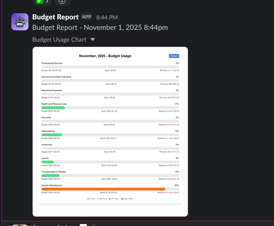 and then based on the budget table i have another automation that uses the api fo airtable to send a custom report of the budget consumption to my personal slack