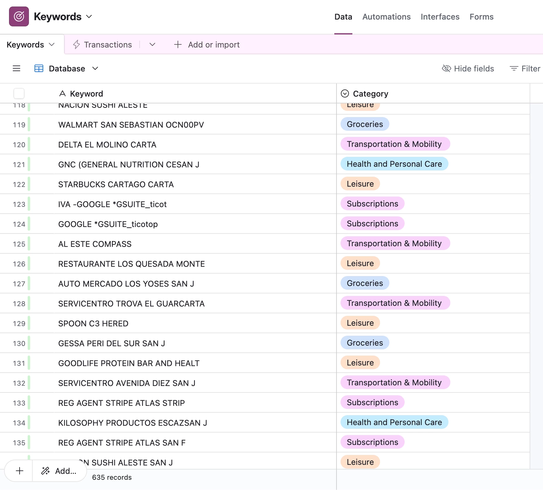 2. When I manually categorize that transaction: - The keyword record is updated with the category - This acts as a "memory" for future transactions