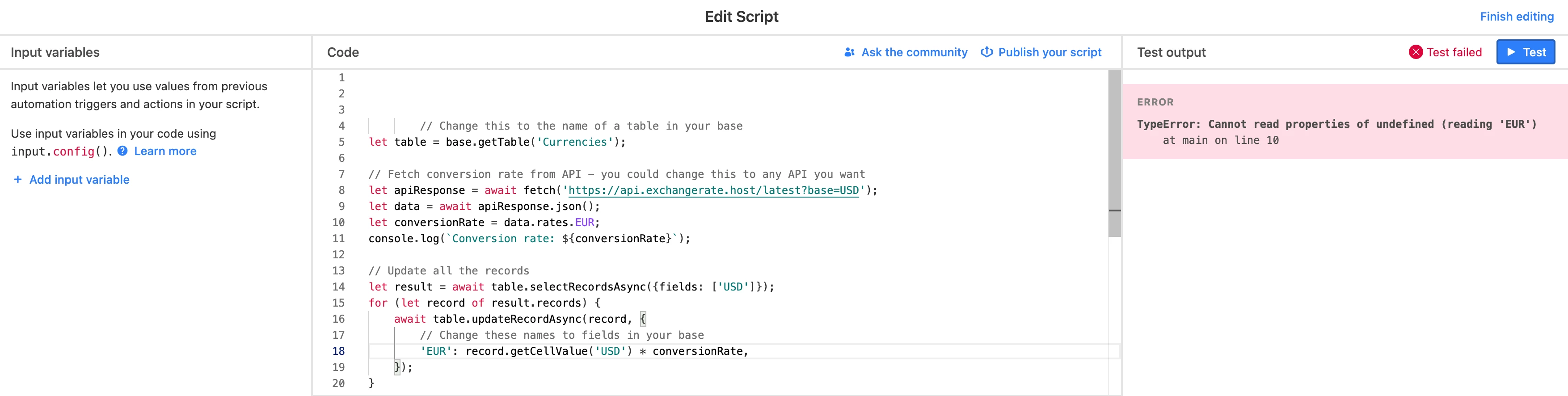 Hi, my currency script can be run manually but fails when run via automation. I'm using the standard, "recommended" currency script.
