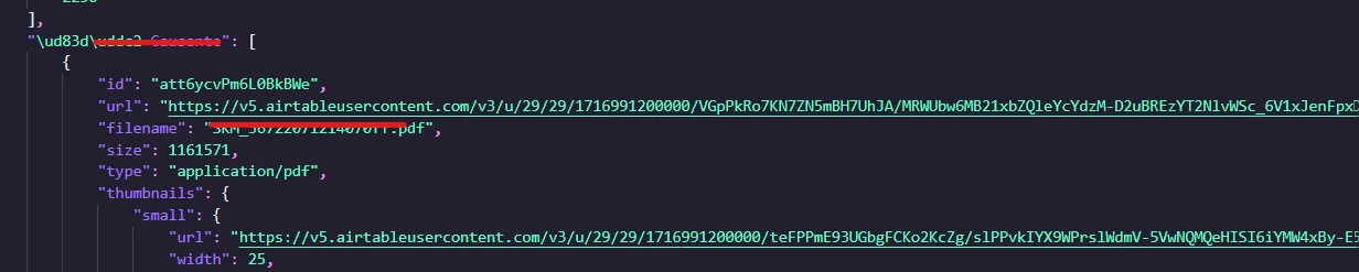 https://v5.airtableusercontent.com/v3/u/29/29/1716998400000/APymLz9oGAW4AZ1vM_9z3w/53CMUJ...) + the value of the `filename` (SKM_36722071214070ff.pdf) and then the desired output name of the file.
