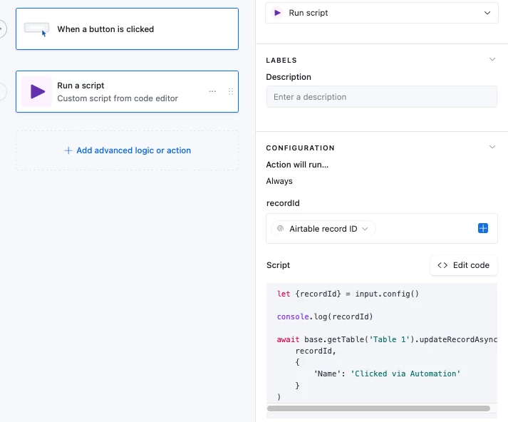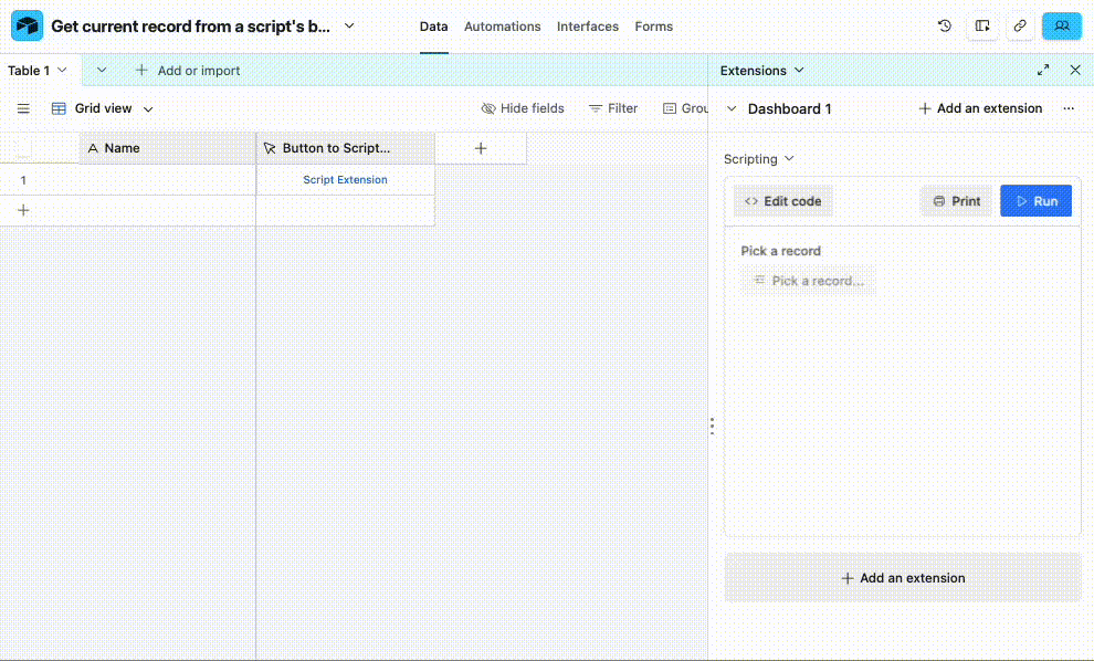 I’m new to airtable and I try to make a script triggered from a button field. I need to get the selected record linked to the button clicked but could not find how to achieve this.