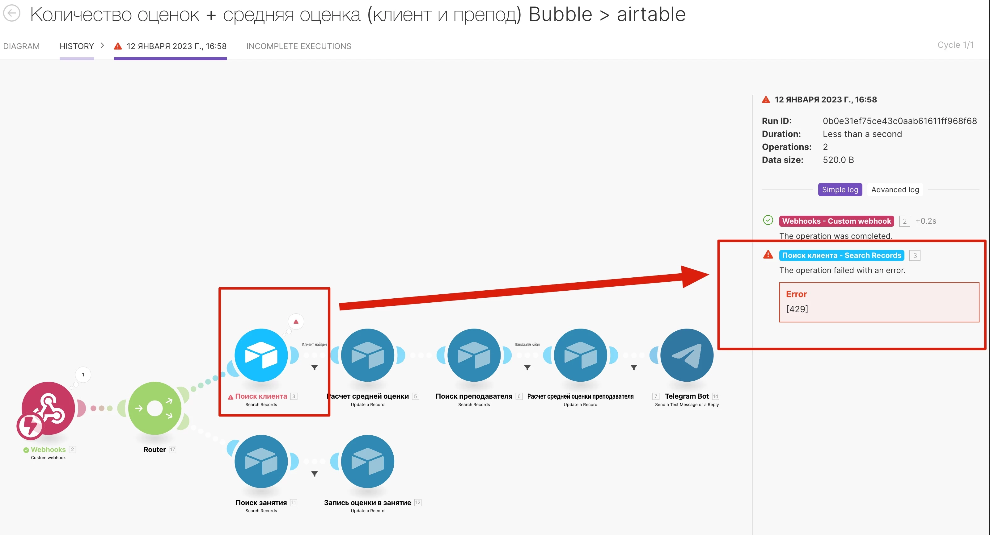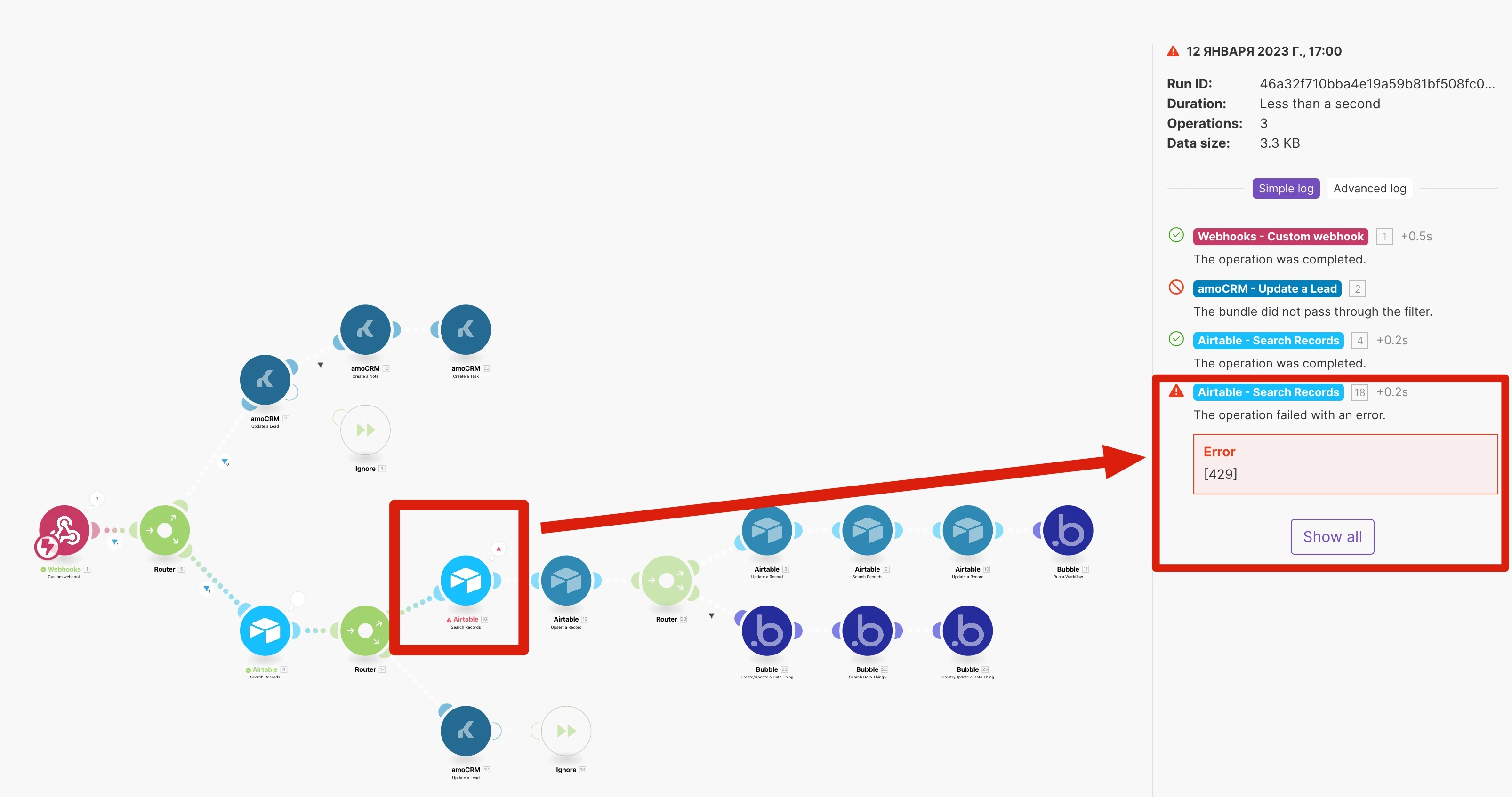 Hello! We encountered a number of systematic errors when accessing our Airtable databases inside Make (former Integromat) scenarios via API