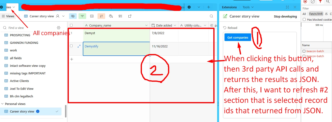 3. After this, I want to refresh airtable view of a table that is selected record ids returned from API.