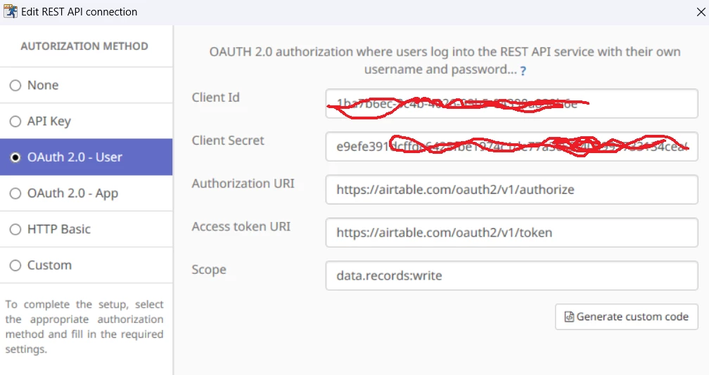 I have already created a token in airtable, but unfortunately I can no longer connect to airtbale and the application. Could you tell me if the parameters in the new connection are filled in correctly? Thanks in advance. See screenshot's. What am I doing wrong ?