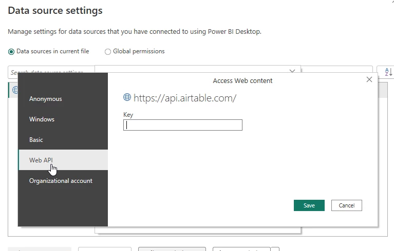 I do see a method in data source settings of query editor (PowerBI or Excel) called Web API but Airtable has deprecated its use.