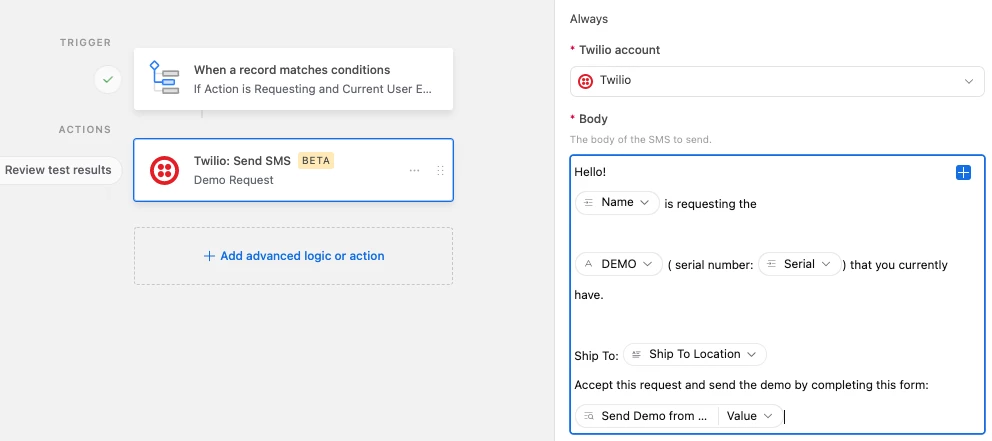 I am using formula fields to generate prefilled form links to send out via email and SMS. The emails are pushing through fine, however, the URL is not being generated and sent through the SMS via Twilio. The message comes through, but there is no URL included.