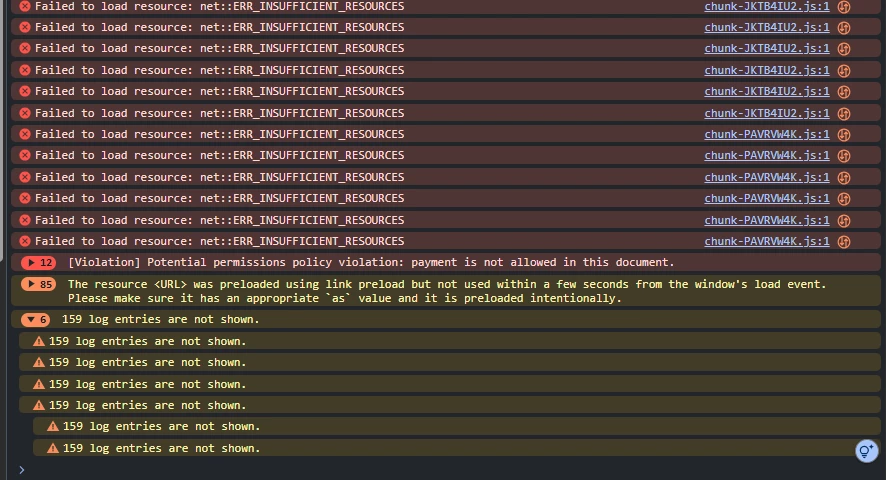 Hmm, how many records are supposed to be displayed @ChristyNavarro ? I took a look at your link with devtools and got a ton Insufficient Resource errors (this is just the bottom of the panel, there’s a bunch more).