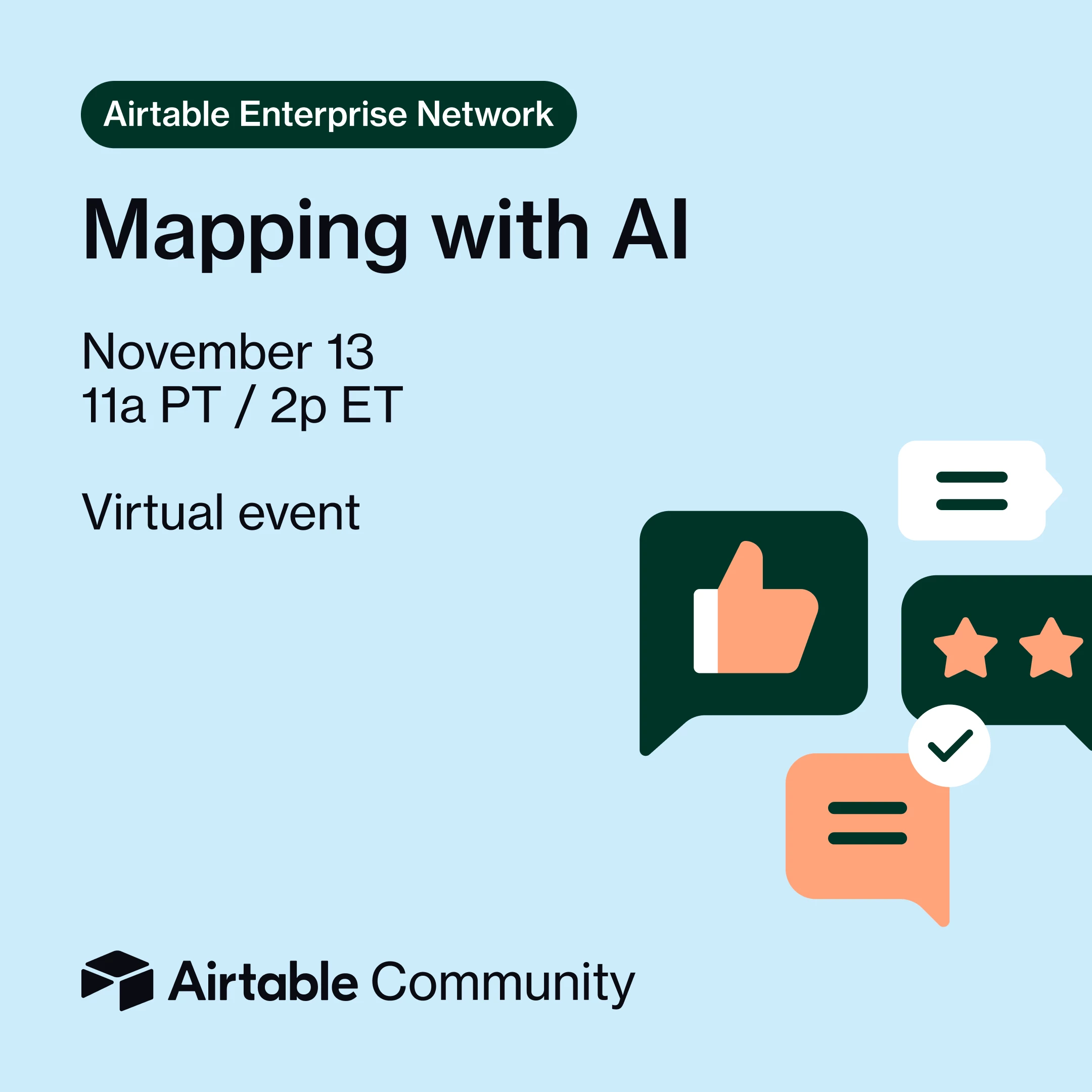Join us for a 30-minute virtual event on November 13 as we explore how Airtable Omni and the Interface Extensions SDK can transform spatial data into interactive maps—right inside your interfaces.