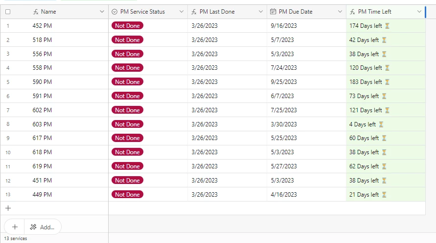 {PM Service Status} is "done" <---- This is the field i want to have formulated based on {PM Time Left} containing the ⏳ symbol