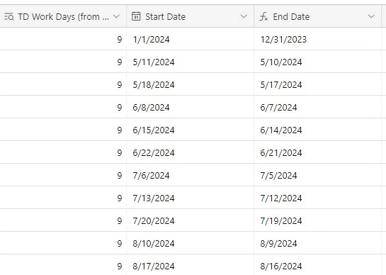 The Start Date1 is formatted as a Date US (9/5/2023)