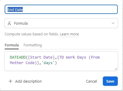 I thought I would use the Datetime_Format, but I am getting an #error! I wrote DateTime_Format({Start Date1}+{Duration}-1, 'M/DD/YYYY')