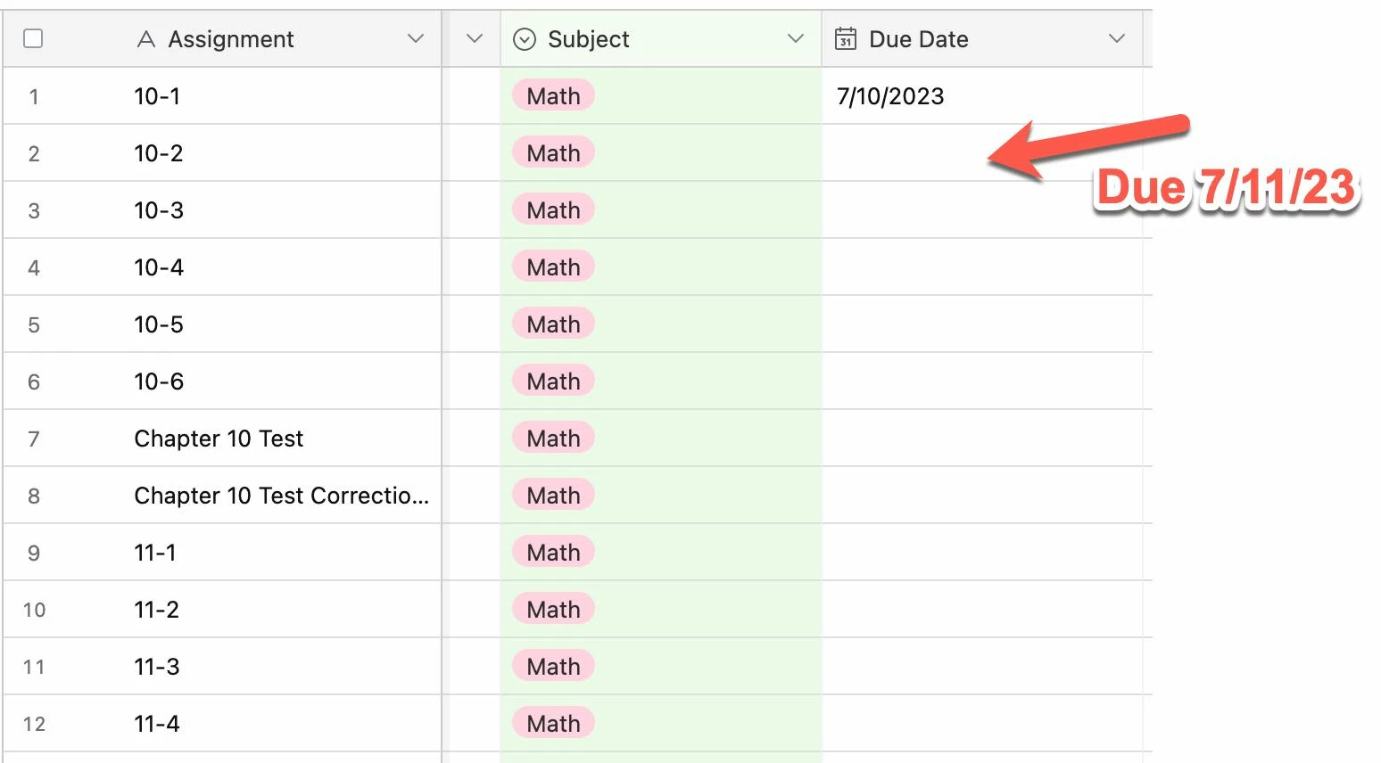 I am creating a list of tasks that need due dates assigned using the following conditions: