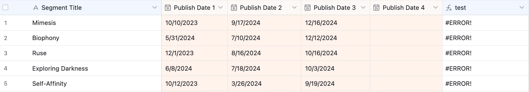 And so we use a second field to handle the display element so that we don't need to repeat the formula that combines all the dates for us. This is a personal preference thing that makes things easier to manage and if you won't be adding more date fields you can just combine these two fields really