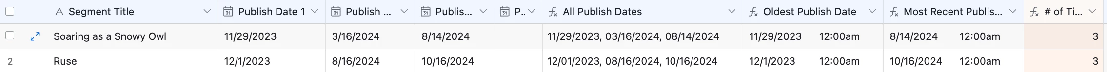 Another column that just adds the number of times the content has been published, so counts the number of fields with a date in them.