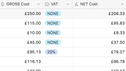 Essentially I am trying to track various hires and purchases for work, some of which have VAT and some do not. I have a Gross cost but I need the NET cost (without VAT).
