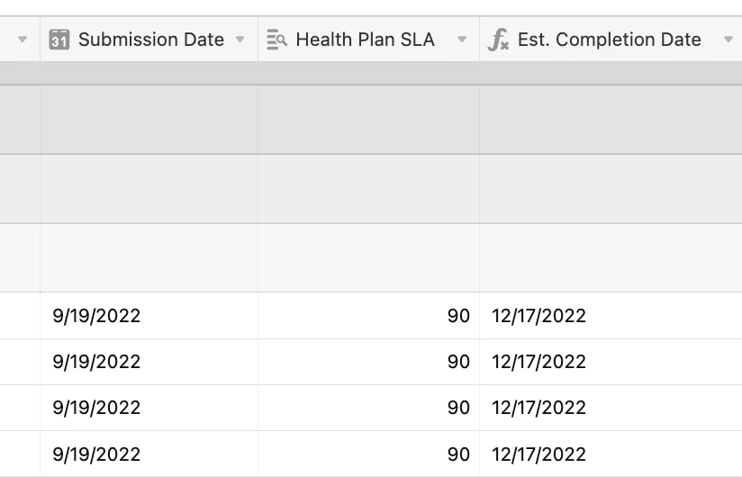 The formula I have currently is DATEADD({Submission Date},{Health Plan SLA},"days")