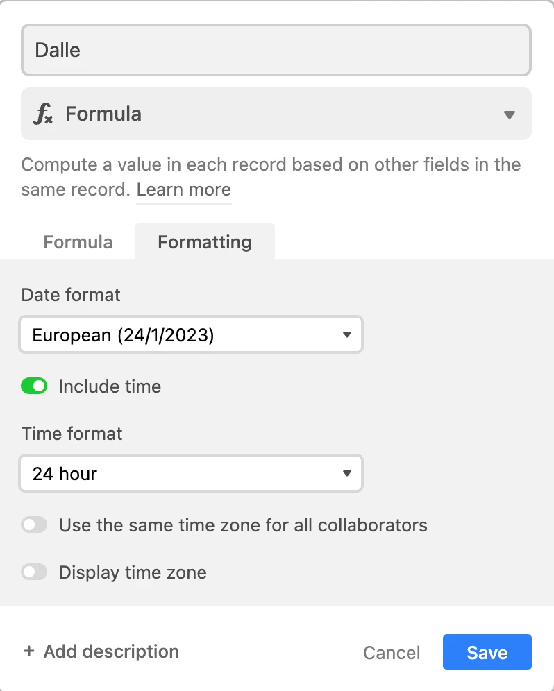 I use the formula DATETIME_PARSE(CONCATENATE(DATESTR(Date),' ',{Start Time})) to create a date & time that can be displayed on the calendar. However, the result of the formula returns the wrong time, increased by one hour.