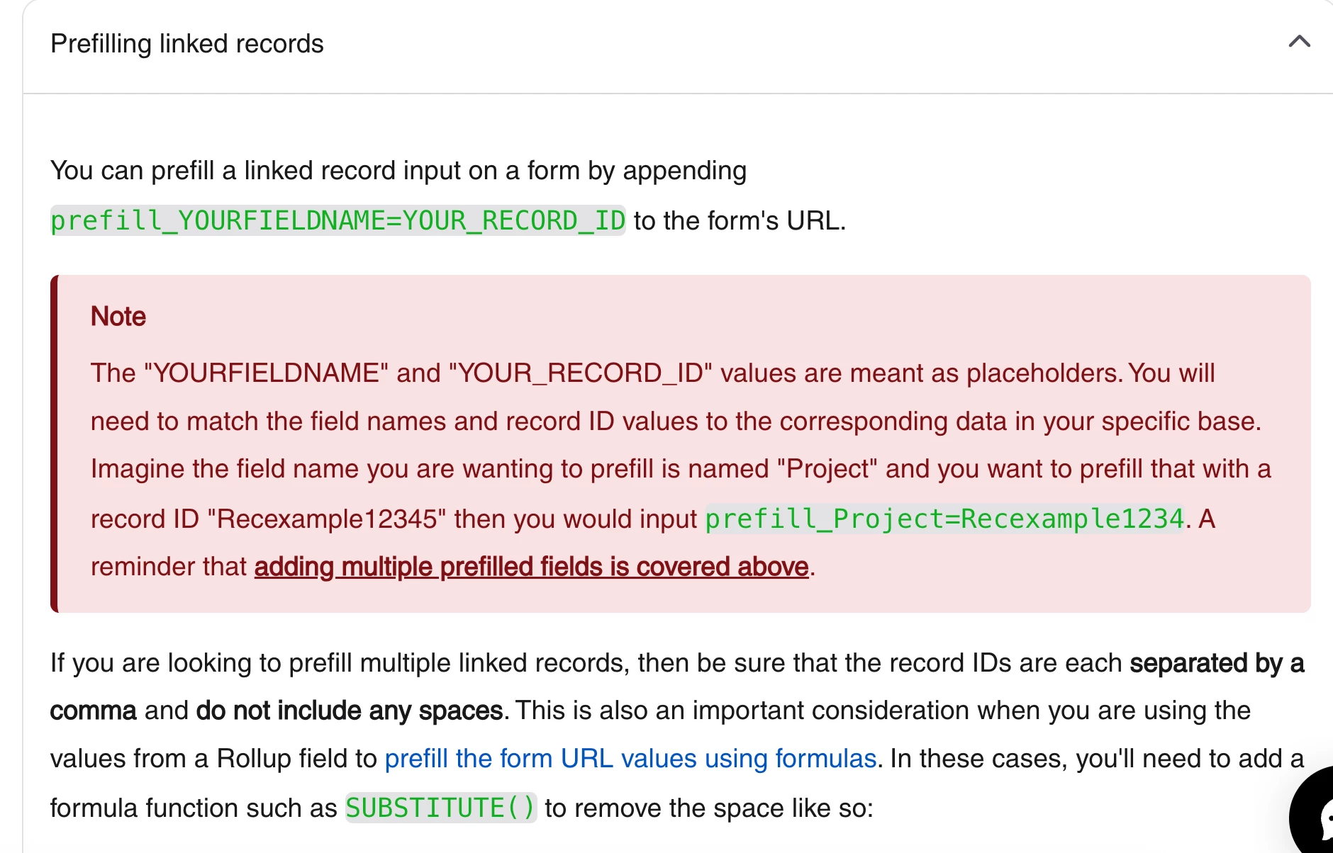 Have made plenty of Forms pre-filled encoded URLs (Button linked to formula building the URL), but cannot get this one to work - only seems to be for the Record Picker element