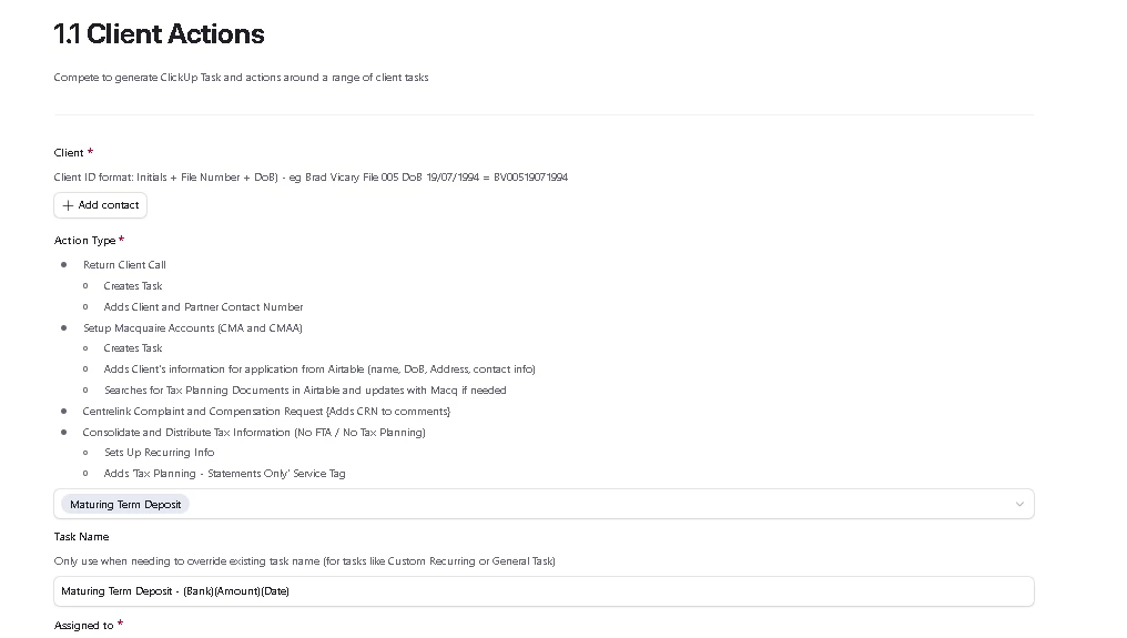 But when I try to pre-populate the record picker under Client (which selects record from a linked table) it just doesnt fill it. I have tired manually creating: