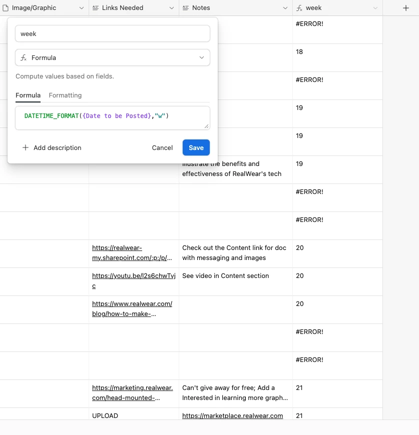 DATETIME_FORMAT({Date to be Posted},"w"),