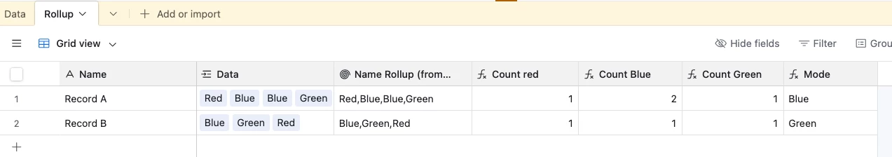 After extensive searching, I’ve confirmed that rollup functions do not support finding the mode of the values in the rollup field. I can’t be the only person who has come across this need, so I’d love to know what methods are available without using a 3rd party app. I’m not opposed to an automation, but would rather it be as simple and without the need for scripting if possible.