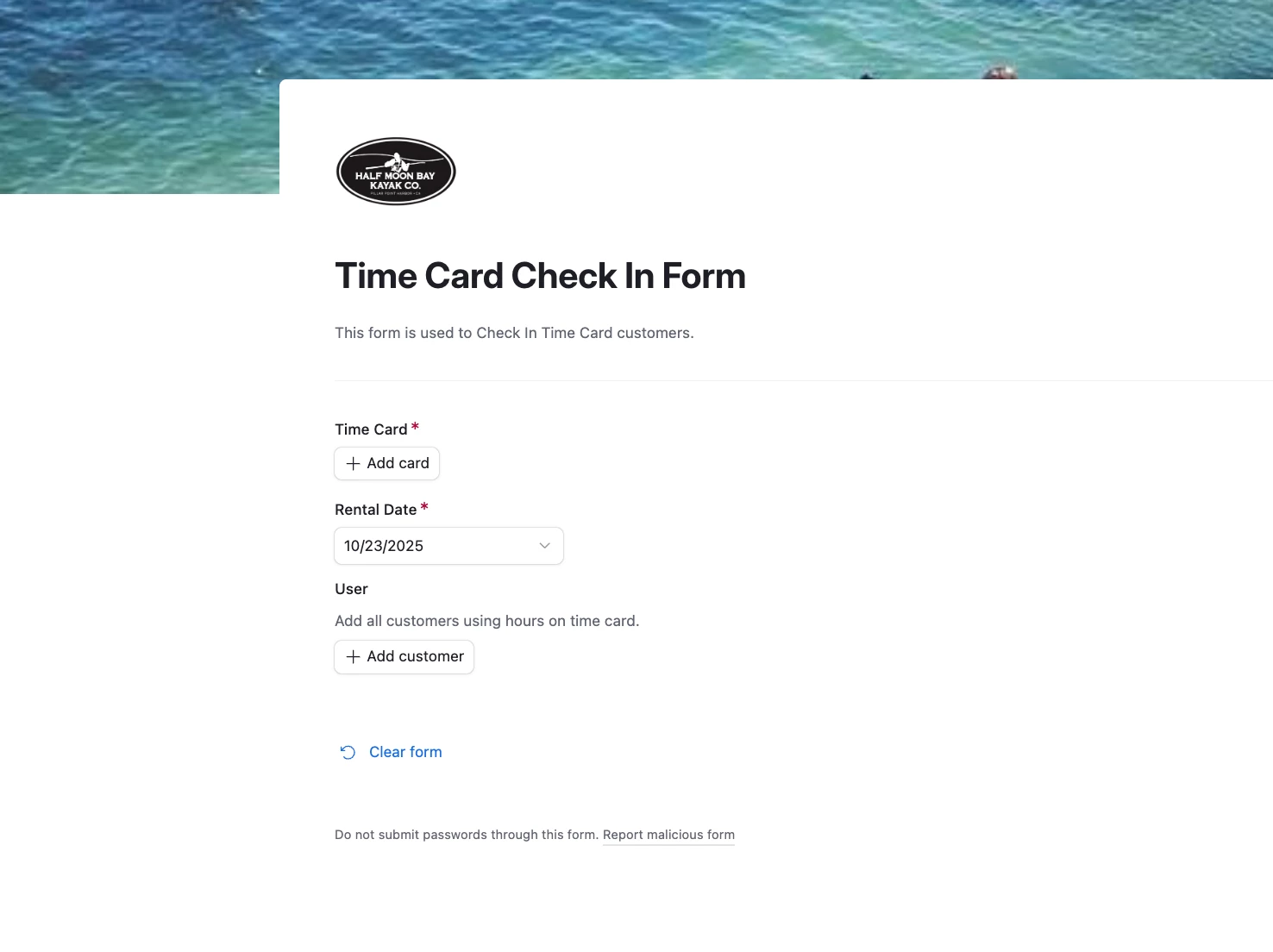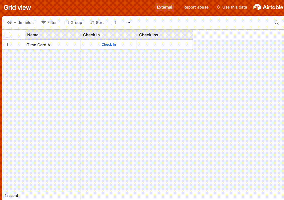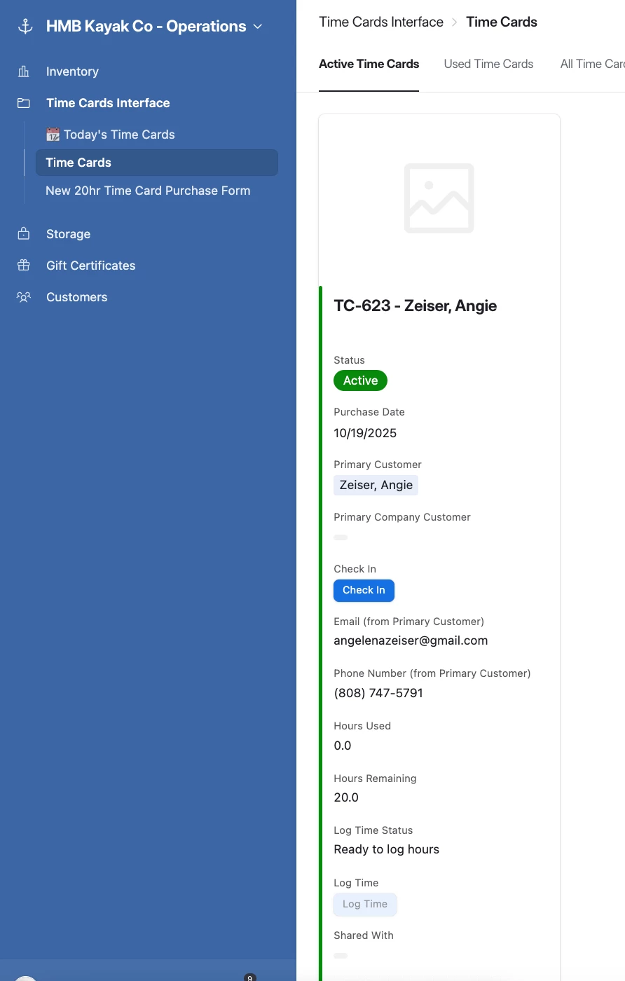 Thanks Mike! This is Angie and I’m using the owner’s credentials. I have beach staff using an interface. The first screenshot is of the data view. It was working a few weeks ago. A user would click the Check In button and it would redirect to the form with the Time Card and Date prefilled. Once someone is checked in, the Log Time button becomes available to click and log hours, which is also a workaround from what I wanted but it works.