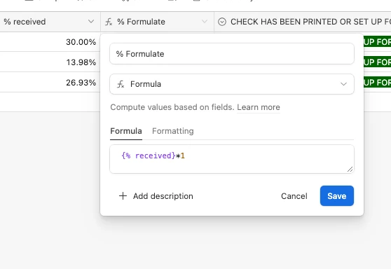 I am going cross eyed trying to figure out the correct formula for getting a % field to show up in an automated email as a whole number %. Either rounded up or down. I have tried so many and it still is not pulling correctly. I have tried round up, ceiling and a few other but they never carry over correctly.