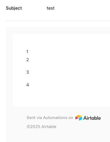 However, I’m getting a lot of line breaks between the text when I use either \n or <br> when I use the formula in the Gmail automation. This screenshot is the formula pulled into a gmail automation