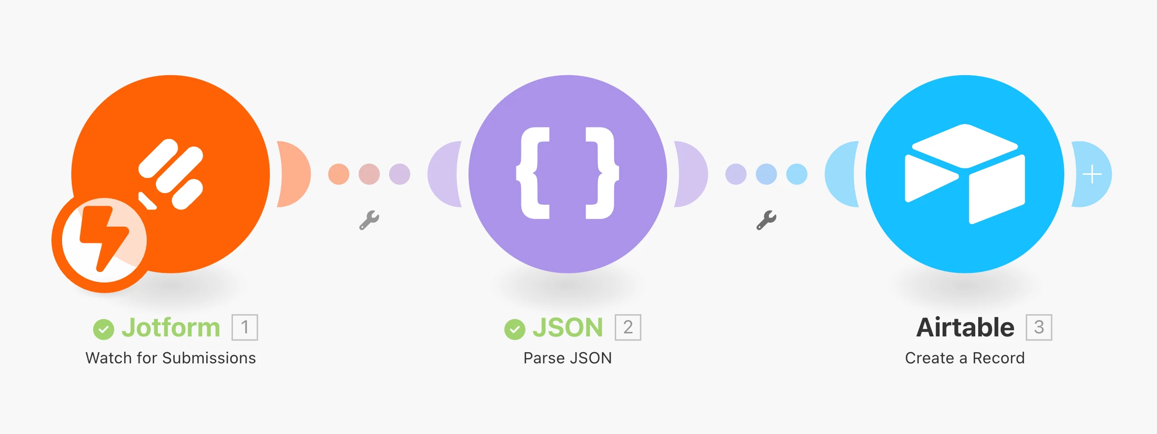 You’ll need to parse the JSON from JotForm’s configurable list widget, which will then break up the list into multiple “bundles” (i.e. records), so you can create multiple records in Airtable — one record for each bundle.