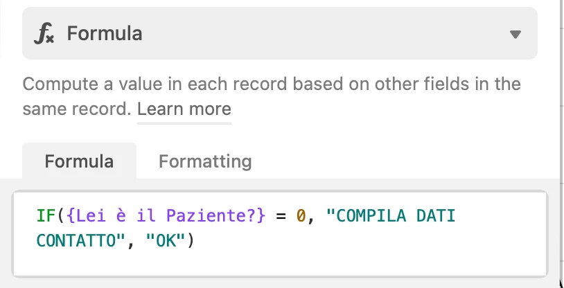 - Then I have a subsequent Single Line Text field in which I need to have another IF in the formula field above where: IF this field is NOT empty > Value1.