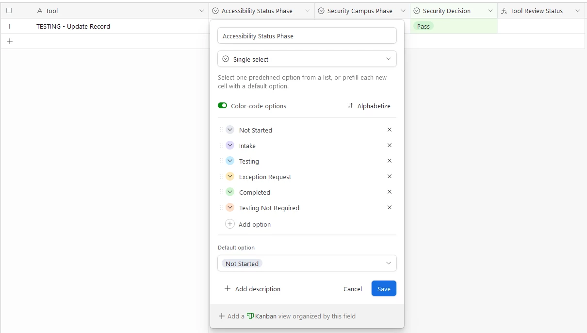 For example, for tool A, the accessibility status = Testing Not Required and security status = Complete, it should be marked Review Completed in the formula column.