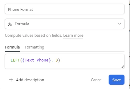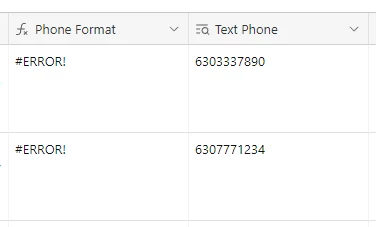 LEFT({Text Phone}, 3) => #ERROR!