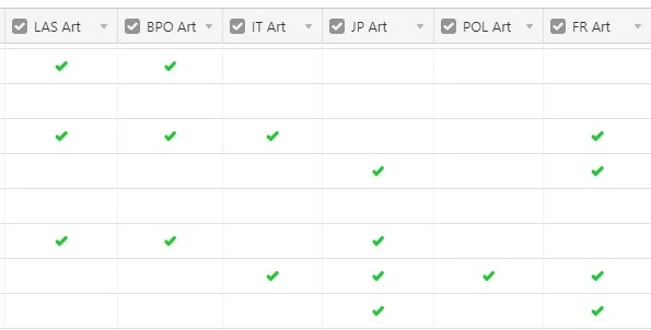 {LAS Art}, {BPO Art}, {IT Art}, {JP Art}, {POL Art}, {FR Art}),