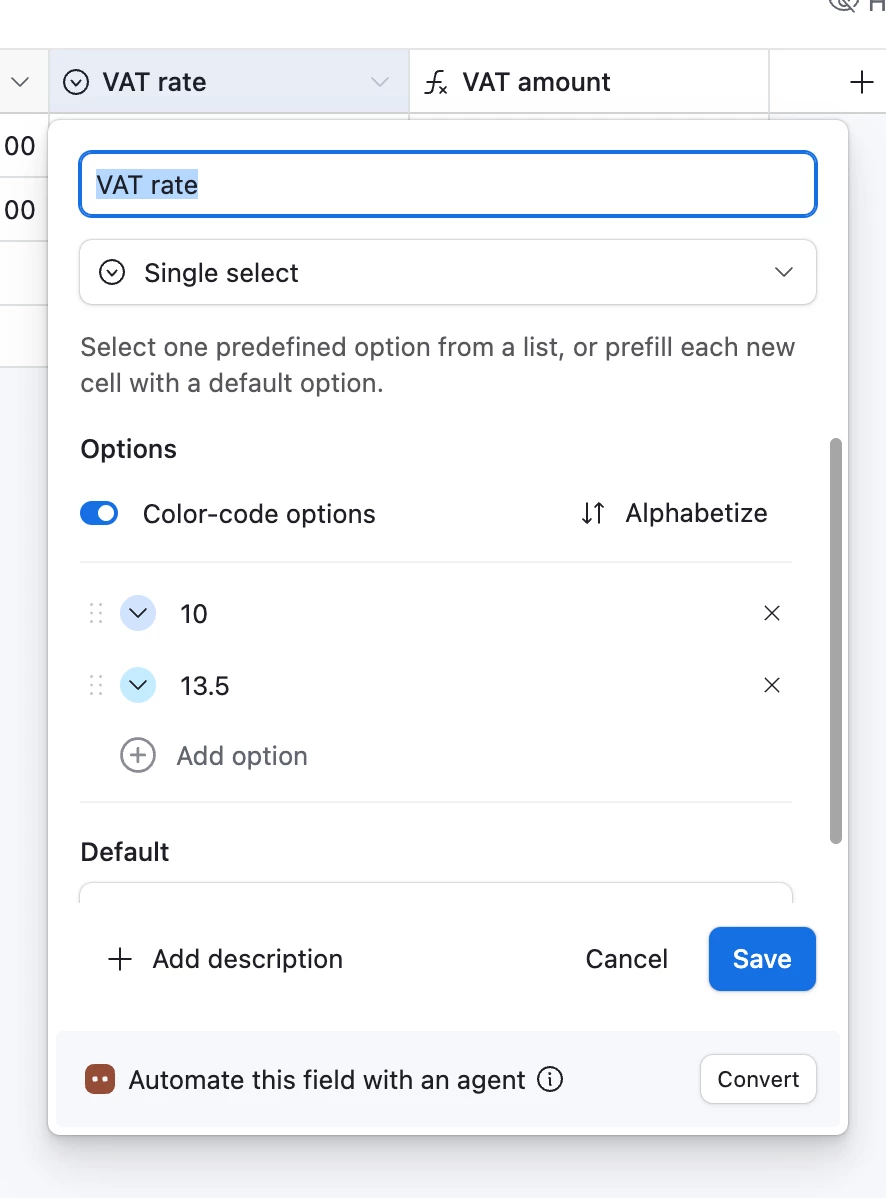 Is it possible to get VAT Rate as single select and VAT Amount working together correctly?