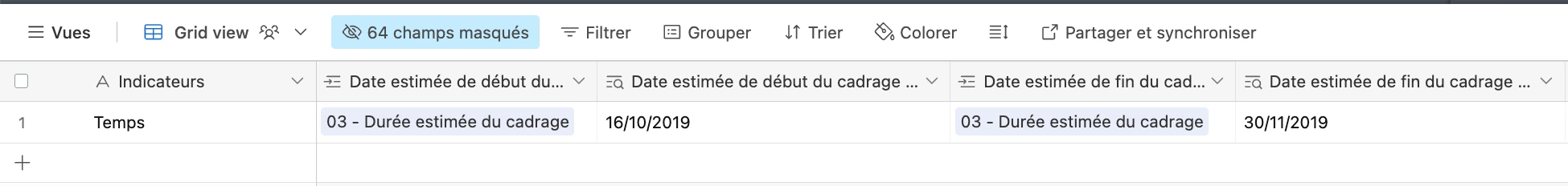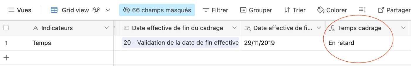 Here is the formula: IF({Date effective de fin du cadrage (from Date effective de fin du cadrage)}<{Date estimée de fin du cadrage (from Date estimée de fin du cadrage)},"In time","Late")