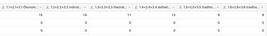 The Goal is that I will have a new formula field, which gives me the lowest value of all 6, to be more precise a word which belongs to one of the dedicated fields (here it would be value "8" - field "1.6+2.6+3.6 traditio..." matching word which should be shown is "traditional")