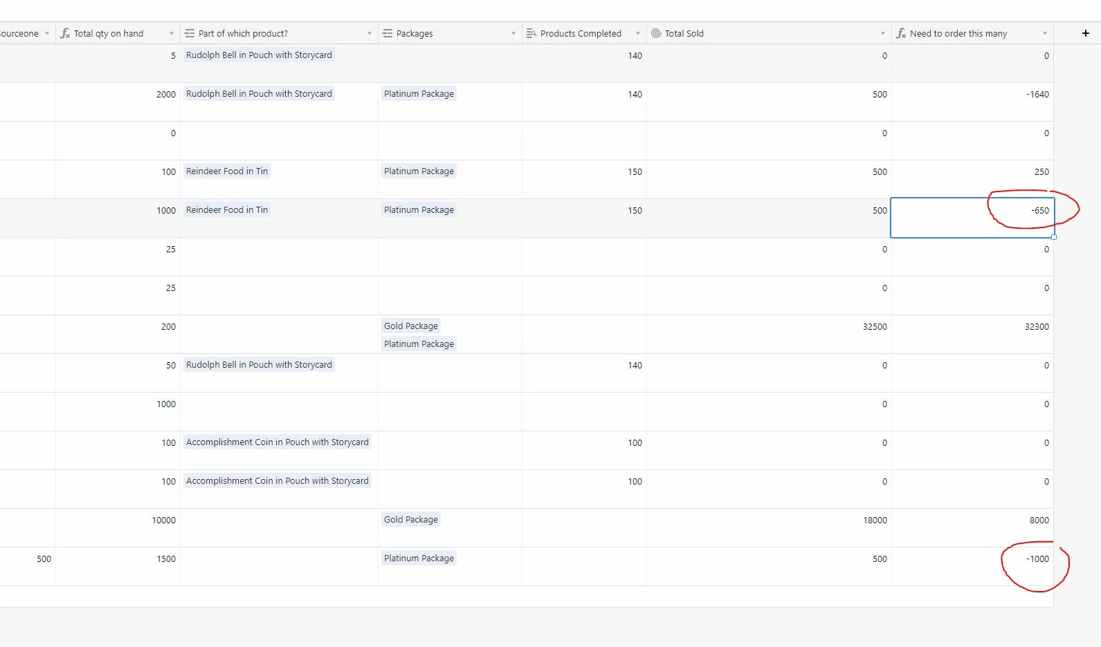IF({Total Sold}> 0, MAX({Total Sold}-({Products Completed}+{Total qty on hand})), 0)